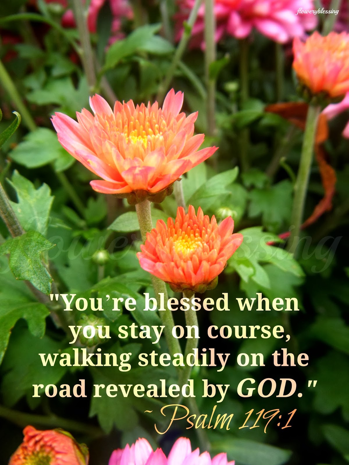 "You’re blessed when you stay on course, walking steadily on the road revealed by GOD." ~ PSALM 119:1 (MSG)